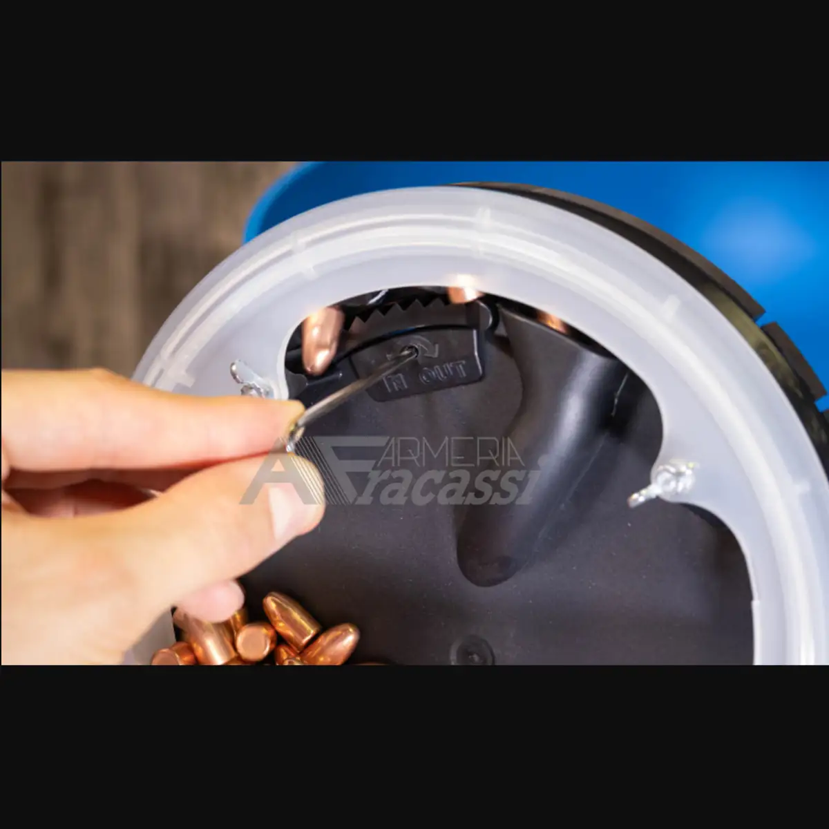 È possibile inserire fino a 250 ogive da 9 mm avendo prestazioni ottimali, riducendo la necessità di ricariche frequenti, risparmiando tempo e garantendo sessioni di ricarica ininterrotte.