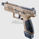 Per la sicurezza sono presenti: sicura al grilletto, sicura al percussore e contro lo sparo ad otturatore aperto. L’arma, classificata sportiva, esce sul mercato in calibro 9×19 ed ha una capacità di caricatore a 19 colpi.