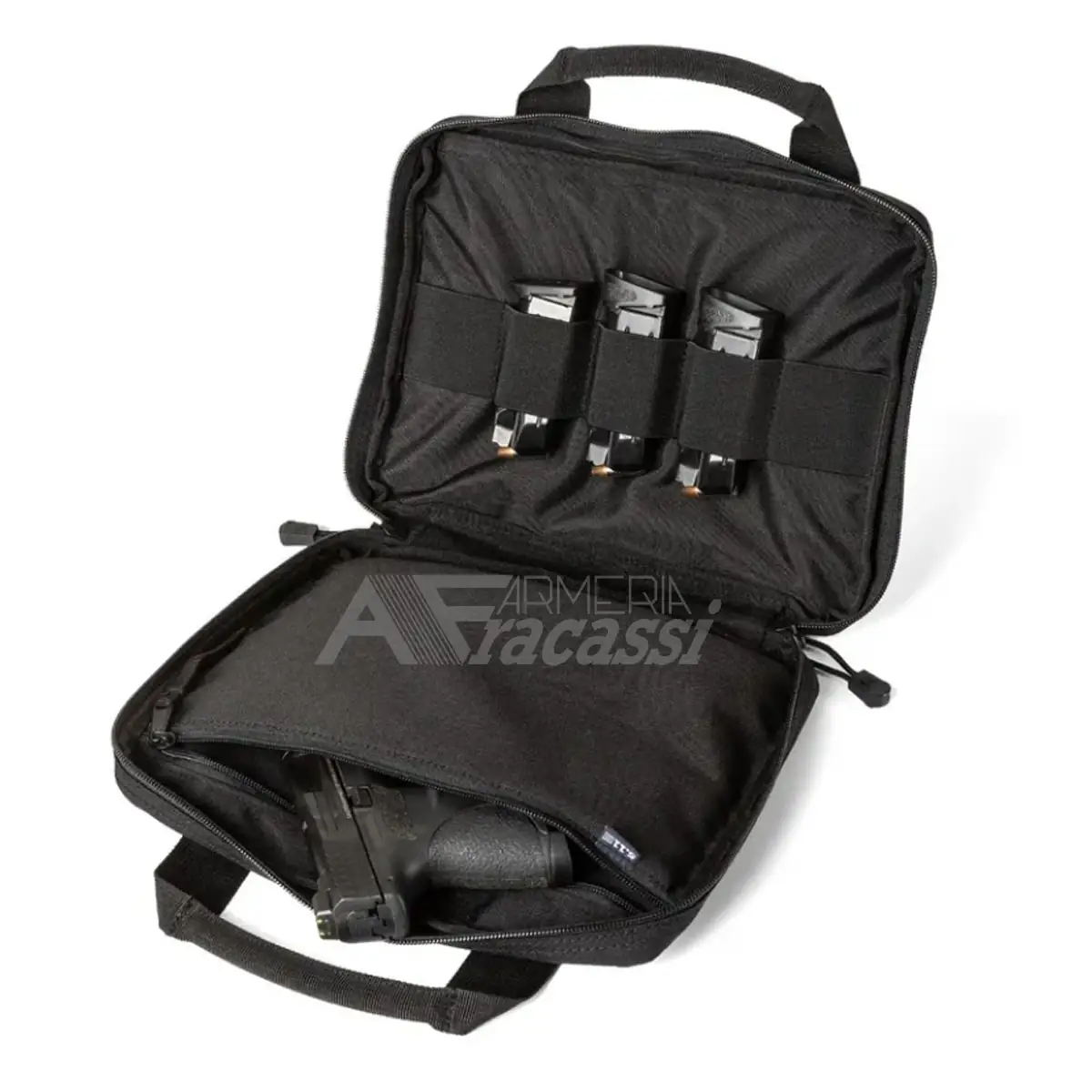 La custodia per pistola 5.11 è realizzata in robusto nylon 1050D resistente alle intemperie e presenta uno scomparto interno imbottito con cerniera per l’arma da fianco, una serie di robuste cinghie elastiche per tenere fermi caricatori e accessori, cerniere avvolgenti bloccabili per una maggiore sicurezza, maniglie rinforzate e un WriteBar™ esterno per un’identificazione rapida. DIMENSIONI 2,22 cm cm A x 28 cm cm L x 4,4 cm P Capacità totale 3 litri
